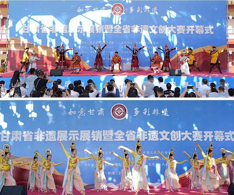 開(kāi)幕式前,酒泉市安排舞蹈《絲路敦煌》、哈薩克民歌《牧羊馬》、舞蹈《揚(yáng)戲格》進(jìn)行熱場(chǎng)演出,充分展示非遺傳承人良好的精神風(fēng)貌。陶布秀爾樂(lè)舞《歡樂(lè)的陶布秀爾》、冬不拉彈唱《只要你走進(jìn)哈薩克氈房》、瓜州民歌聯(lián)唱《十二繡瓜州》、舞蹈《千手觀音》四個(gè)非遺特色節(jié)目依次亮相開(kāi)幕式演出,現(xiàn)場(chǎng)觀眾好評(píng)如潮。開(kāi)幕式后,全體與會(huì)人員前往甘肅省非遺系統(tǒng)性保護(hù)成果展展區(qū)、甘肅省非遺工坊展示展銷(xiāo)展區(qū)、甘肅省非遺影像展展廳、甘肅文旅暨非遺文創(chuàng)大賽展廳,實(shí)地參觀了解全省非遺系統(tǒng)性保護(hù)取得的豐碩成果,與各級(jí)非遺傳承人互動(dòng)交流,觀看《甘肅非遺》宣傳片,專(zhuān)家現(xiàn)場(chǎng)評(píng)選“甘肅文旅暨非遺文創(chuàng)大賽”作品。