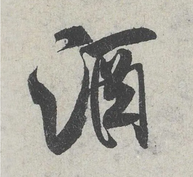 以上為著名行書法帖《蜀素帖》的單字解析,這16個(gè)字,最直觀的代表了米芾書法用筆特色。文章結(jié)束前,我們來欣賞一下米芾的酒字,更是字里行間透露出靈秀之氣,龍飛鳳舞,好生精神,一氣呵成,宛如游龍躍躍欲出。
