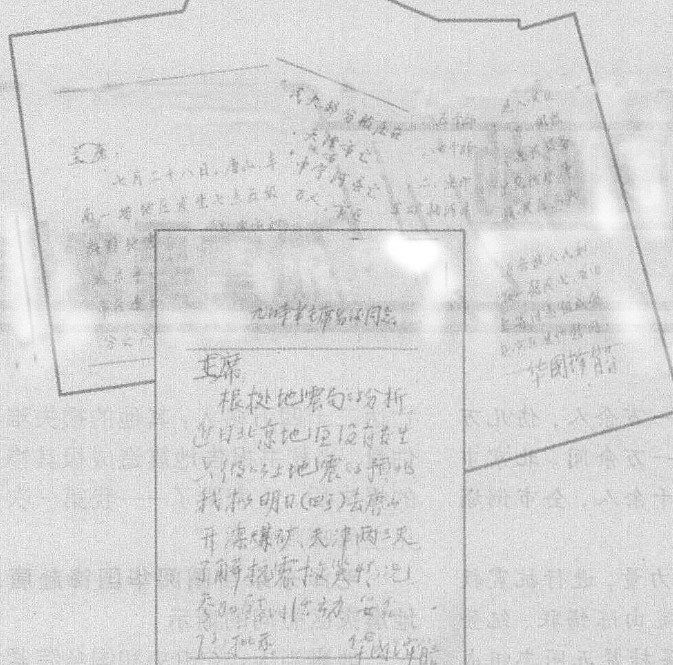 根據(jù)地震局的分析,近日北京地區(qū)沒有發(fā)生六級以上地震的預(yù)兆,我擬明日(四號)去唐山、開灤煤礦、天津兩三天,了解抗震救災(zāi)情況,參加慰問活動,妥否請批示。