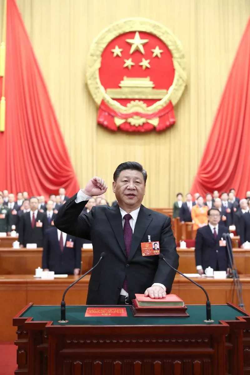 圖為習(xí)近平全票當(dāng)選為中華人民共和國主席、中華人民共和國中央軍事委員會主席。